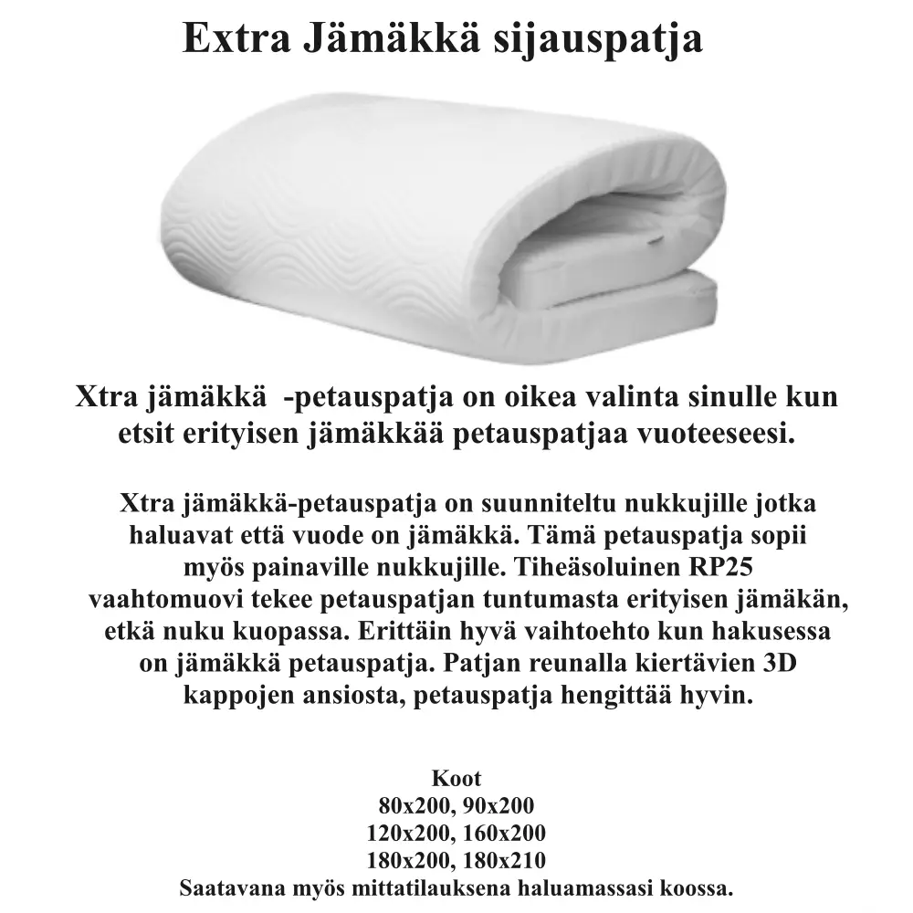 Bounce XXL -runkopatja tarjoaa poikkeuksellista tukea, kestävyyttä ja mukavuutta painavammalle nukkujalle. Se säilyttää muotonsa ja joustavuutensa vuodesta toiseen ja tekee jokaisesta yöstä tukevan, miellyttävän ja palauttavan. Tämä patja on täydellinen ratkaisu, kun haluat yhdistää kestävyyden ja mukavuuden samassa paketissa.