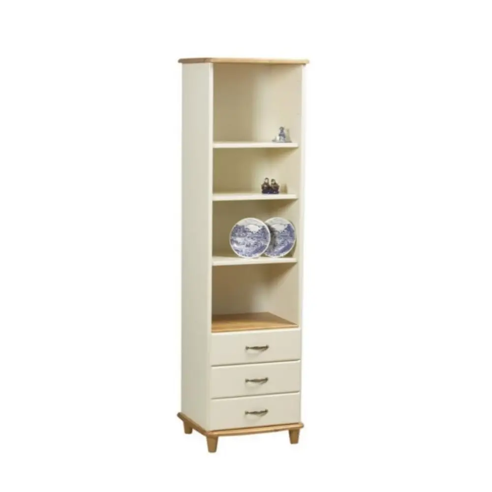 Aino hyllykkö 51003 on kotimainen ja tyylikäs säilytyskaluste, jossa on kolme hyllyä ja kolme vetolaatikkoa metallikiskoilla. Kestävä MDF- ja massiivimäntyrakenne, monipuoliset väriyhdistelmät ja laadukas viimeistely tekevät siitä ajattoman valinnan kotiisi.