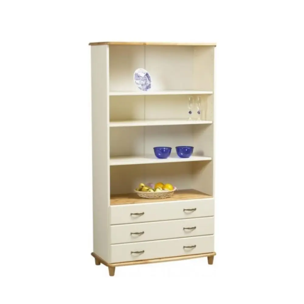 Aino hyllykkö 95003 on kotimainen ja tyylikäs säilytyskaluste, jossa on kolme leveää hyllyä ja kolme vetolaatikkoa metallikiskoilla. Kestävä MDF- ja massiivimäntyrakenne sekä monipuoliset väriyhdistelmät tekevät siitä elegantin ja pitkäikäisen valinnan kotiisi.