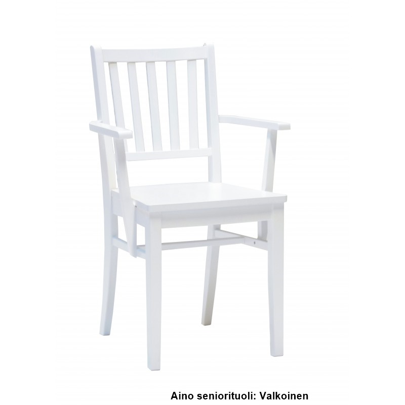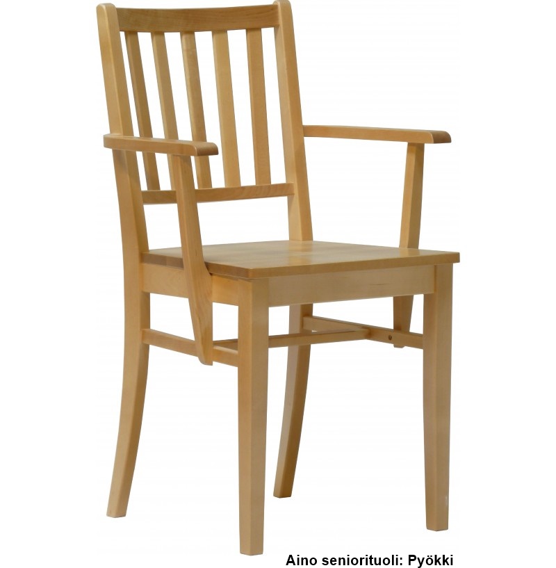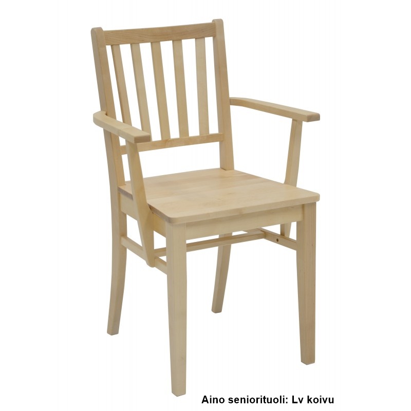 Aino-seniorituoli tarjoaa erinomaisen istumatuen ja turvallisen käyttökokemuksen erityisesti vanhemmille käyttäjille. Korkea 50 cm istuinkorkeus helpottaa tuolilta nousemista ja istumaan menemistä, ja massiivikoivusta valmistettu rakenne takaa pitkän käyttöiän ja vakaan tuntuman.
