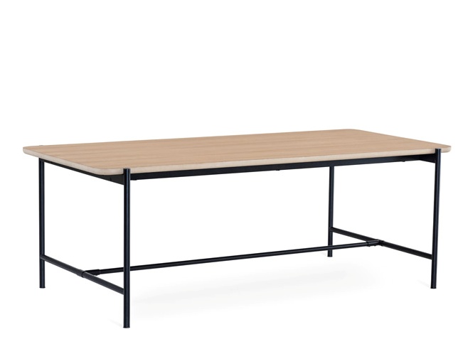 Tyylikäs Ale ruokailuryhmä yhdistää valkoöljytyn tammipöydän ja kuusi Edda-tuolia harmoniseksi ja skandinaavisen selkeäksi kokonaisuudeksi. Mustat metallijalat tuovat pöytään ryhdikkään kontrastin, joka sopii erinomaisesti moderniin ja ajattomaan sisustukseen.