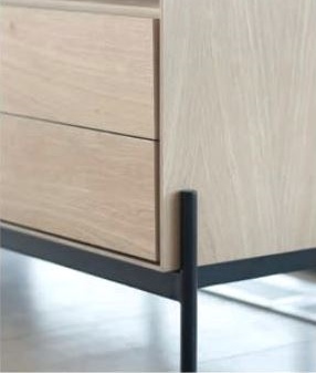 Ale-sarjan valkoöljytty TV-taso tuo olohuoneeseen modernia ja skandinaavista ilmettä yhdistäen valkoöljytyn tammiviilun, mustat metallijalat ja käytännöllisen push to open -säilytysratkaisun. Ajattoman muotoilunsa, runsaan laatikkotilansa ja valmiiksi kasatun rakenteensa ansiosta se on laadukas ja helppokäyttöinen valinta nykyaikaiseen sisustukseen.