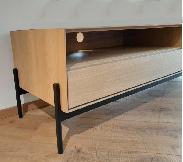 Kestävä MDF- ja tammivanerirunko yhdistettynä metallijalkoihin tekee TV-tasosta tukevan ja pitkäikäisen valinnan. Ale-sarjan TV-taso toimitetaan valmiiksi kasattuna ja on helppo yhdistää muihin Ale-sarjan kalusteisiin yhtenäisen ja harkitun sisustuskokonaisuuden luomiseksi.