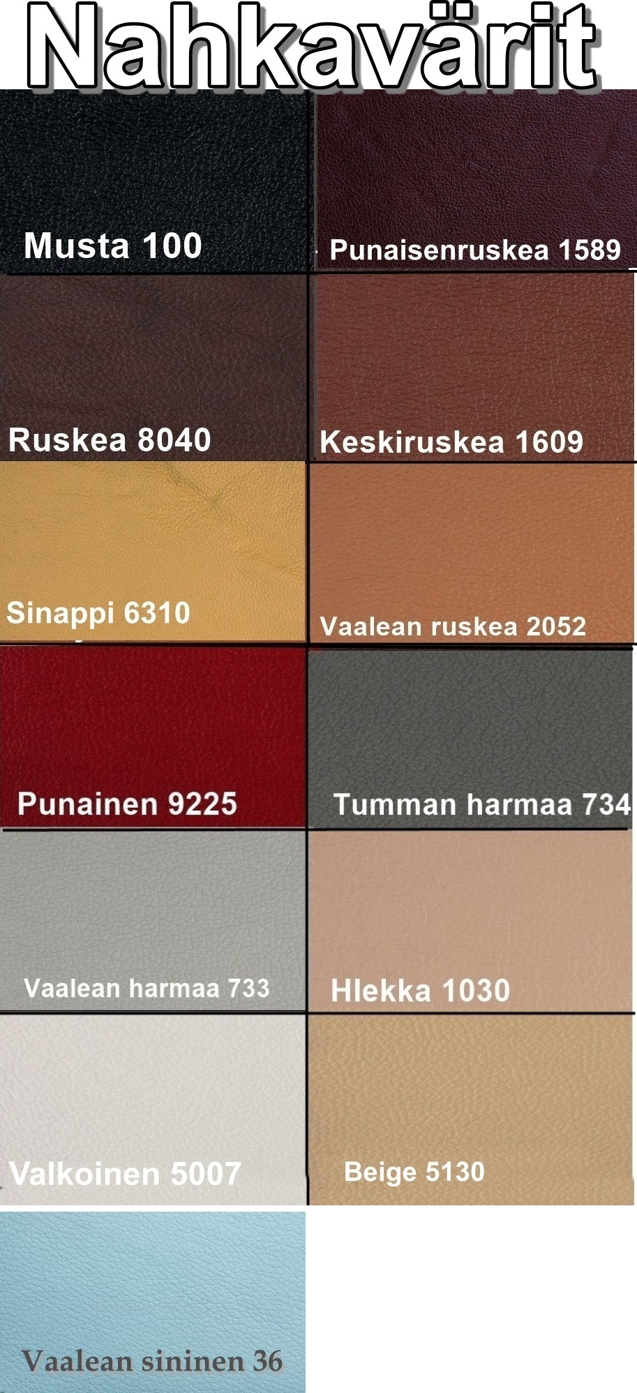 Aleksandria sohva on verhoiltu nahalla siten, että sohvien istuinosat ja käsinojien sisäpuolet on verhoiltu aidolla nahalla, istuinosat ja tausta laadukasta ja kestävää keinonahkaa. Valittavina useita eri nahkavärejä.