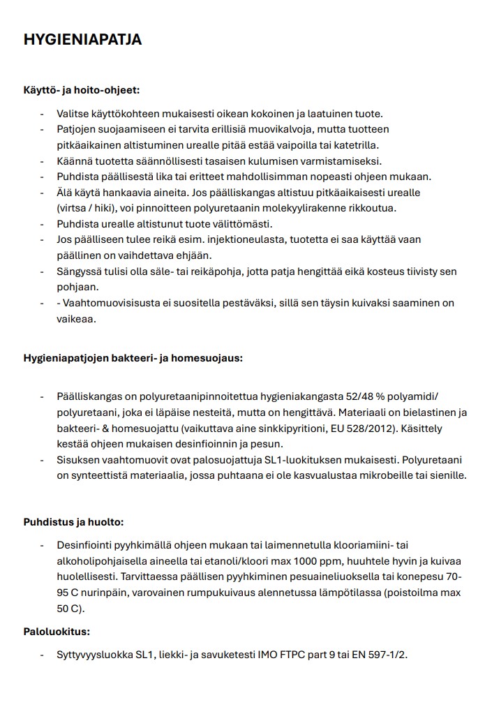 Alva Hygieniapatja 90x200 cm