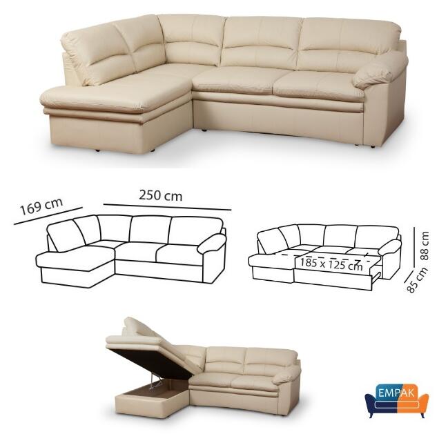 Sohva muuntuu helposti vuoteeksi ja tarjoaa mukavan nukkumatilan vieraille tai arjen tarpeisiin. Divaaniosan alla oleva tilava vuodevaatelaatikko pitää peitot ja tyynyt siististi piilossa silloin, kun niitä ei tarvita. Kiinteät ja jämäkät istuin- ja selkätyynyt takaavat ryhdikkään ja miellyttävän istumamukavuuden.