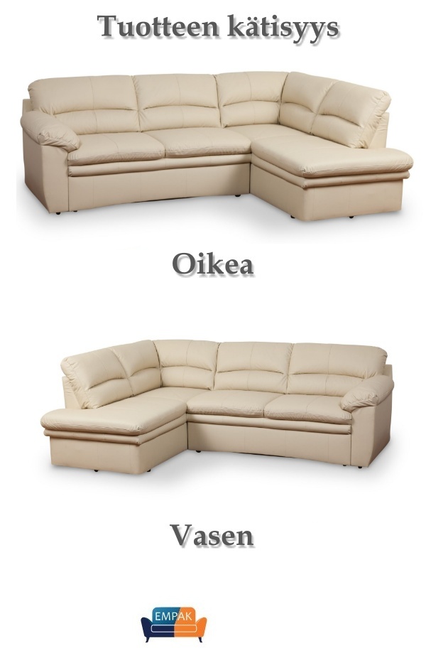 Vankka runko on valmistettu massiivipuusta, kalustelevystä ja vanerista, ja istuimissa käytetty laadukas 30 kg/m³ vaahtomuovi tarjoaa kestävää tukea. Sohva on valittavissa oikea- tai vasenkätisenä, jotta se sopii juuri sinun tilaasi, ja mustat jalat viimeistelevät modernin ilmeen. Käytännöllinen toimitus kahdessa kollissa helpottaa kuljetusta ja käyttöönottoa.