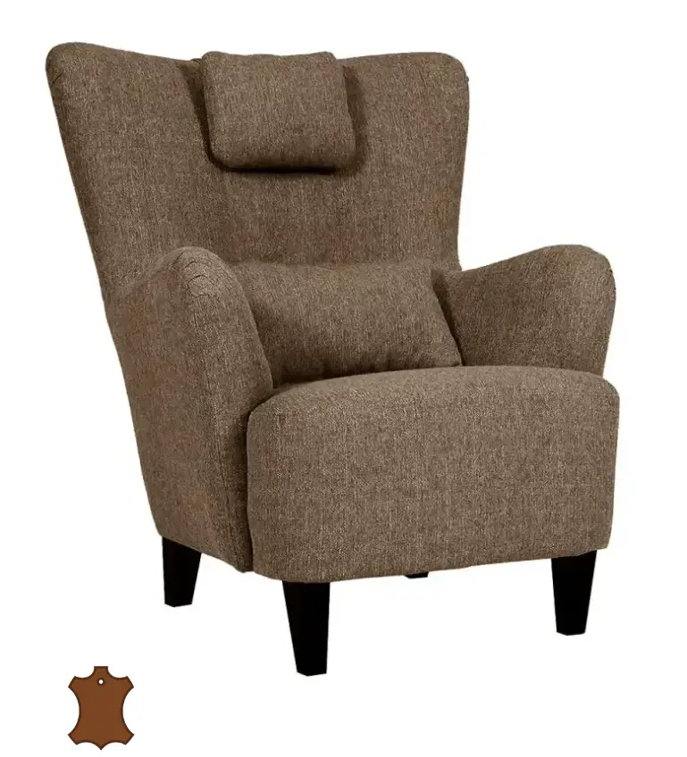 Laadukas nahkaverhoiltu Amanda nojatuoli niskatyynyllä