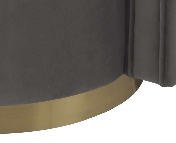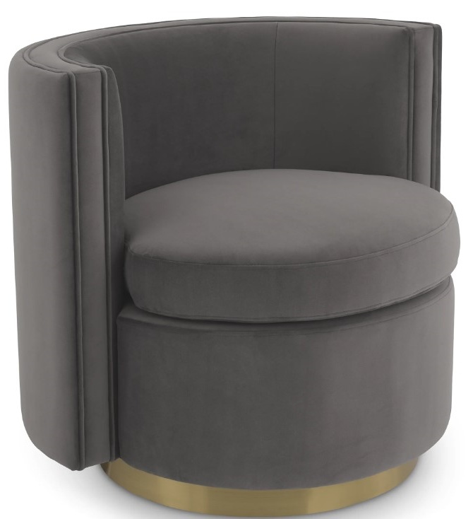 Amanda nojatuoli hurmaa harmaan samettiverhoilun ja messinkisen pyörivän jalustan tyylikkäällä yhdistelmällä, joka tuo sisustukseen ripauksen luksusta. Sen huoliteltu, kaareva siluetti tekee tuolista näyttävän katseenvangitsijan mihin tahansa tilaan.