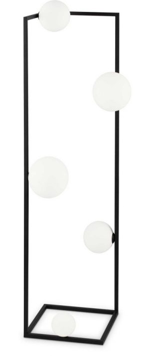 Tyylikäs Angolo PT5 metallinen lattiavalaisin on moderni ja näyttävä sisustuselementti, jossa yhdistyvät selkeälinjainen metallirunko ja valkoiset puhalletusta, happoetsatusta lasista valmistetut kuvut. Lasikuvut suodattavat valon miellyttävän pehmeäksi ja tasaiseksi, luoden tilaan rauhallisen ja kutsuvan tunnelman.