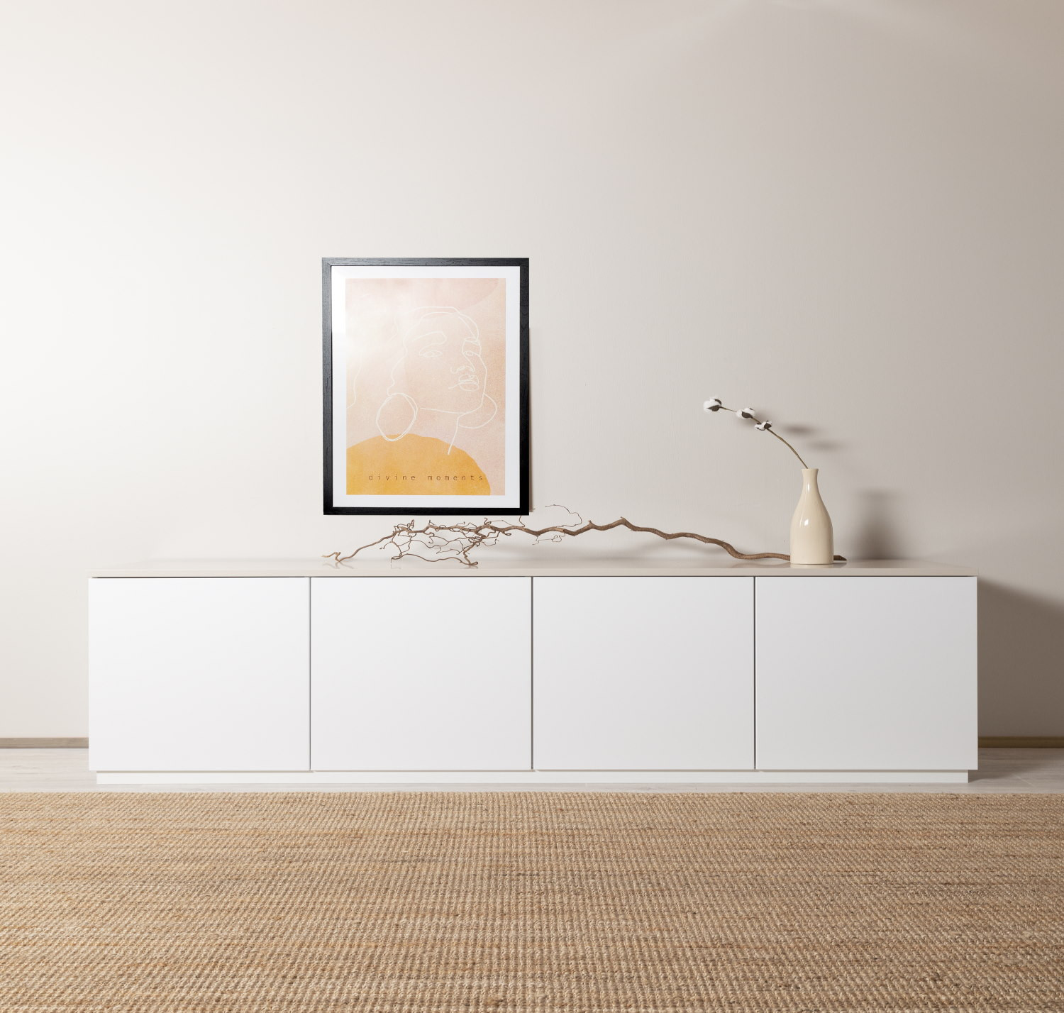 Anton senkki A4.1 on valmistettu vahvasta, VTT:n hyväksymästä E1-luokan MFC-kalustelevystä, jonka valonkestävä melamiinipinta säilyttää värinsä ja kiiltonsa vuosien ajan. Runkoväri on valkoinen, ja kansiväreinä on valittavissa valkoinen, hopea jalava, kaura tai tammi, jolloin senkki on helppo sovittaa erilaisiin sisustuksiin. Tuote toimitetaan valmiiksi kasattuna, ja ainoastaan jalat tai sokkeli tulee kiinnittää – helppo ja vaivaton viimeistely laadukkaaseen kokonaisuuteen.