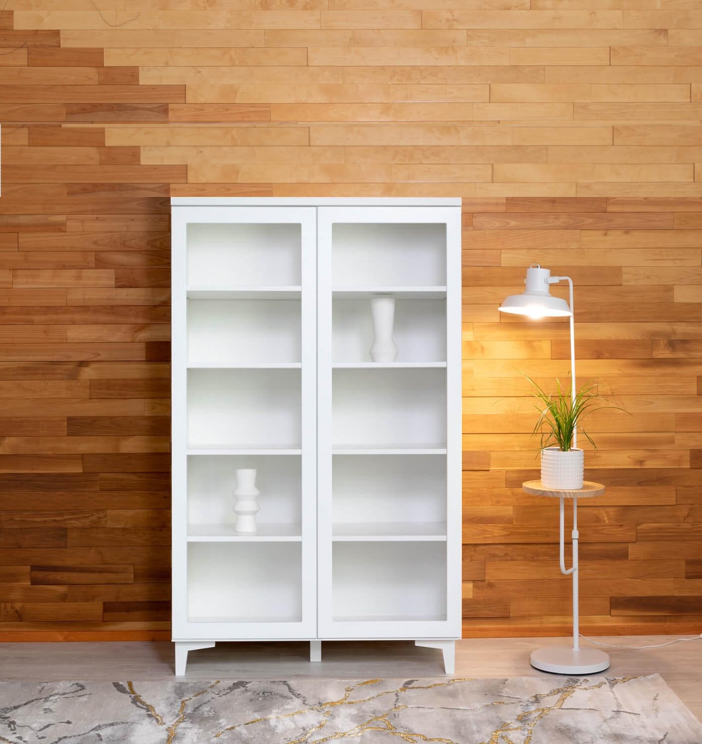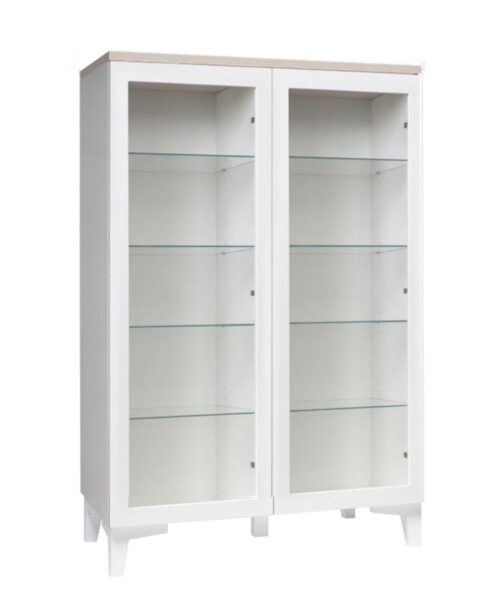 Vitriinissä on korkeussäädettävät hyllyt, jotka ovat saatavilla joko valkoisina tai lasisina – täydelliset erilaisten esineiden esillepanoon. Lisävarusteena saatavat LED-valot luovat lämpimän ja tunnelmallisen valaistuksen, korostaen sisällön kauneutta ja viimeistellen kokonaisuuden tyylikkäästi.