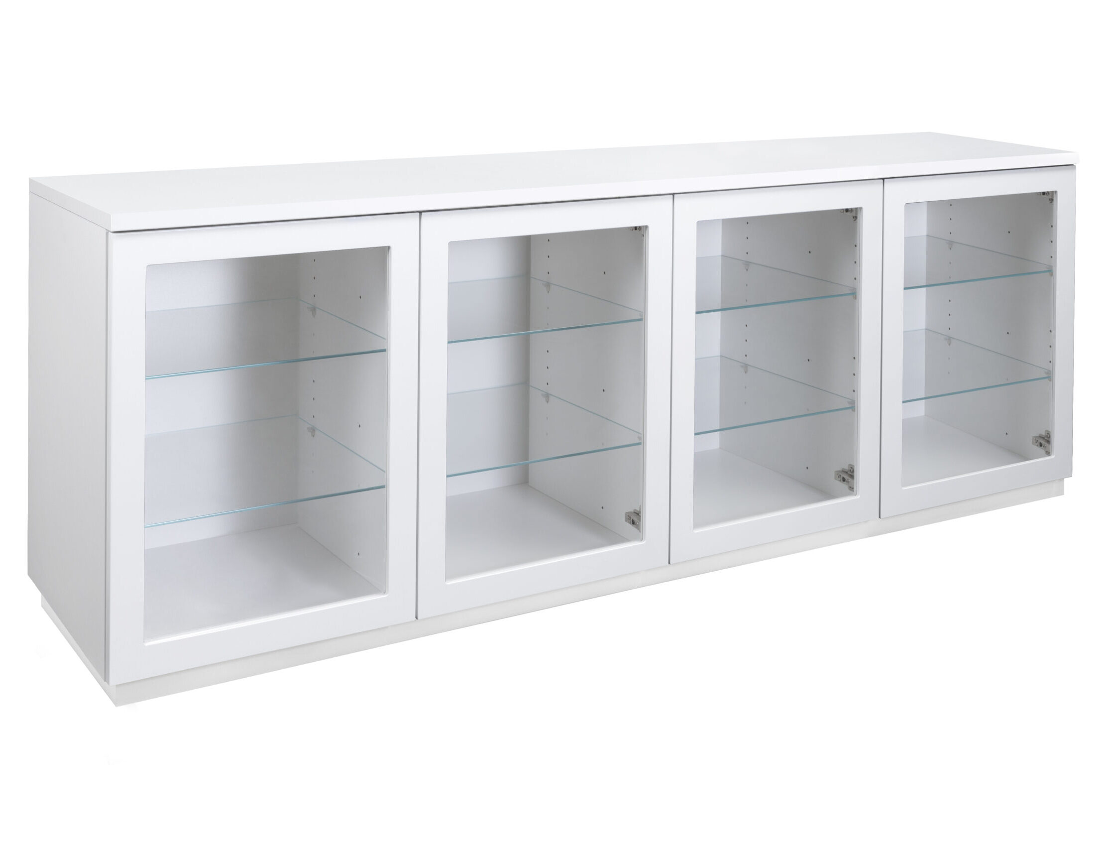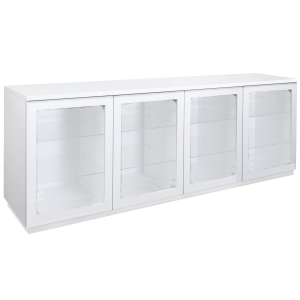 Vitriiniin voit valita korkeussäädettävät valkoiset tai lasiset hyllyt, jotka tarjoavat joustavuutta esillepanoon ja säilytykseen. Lisävarusteena saatavat LED-valot luovat tunnelmallisen valaistuksen ja korostavat vitriinin sisältöä upeasti – täydellinen ratkaisu, kun haluat tuoda esille kauniit astiat tai koriste-esineet.