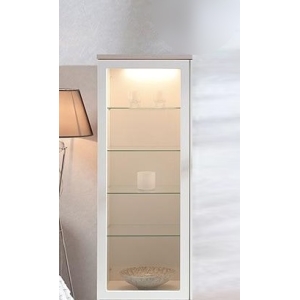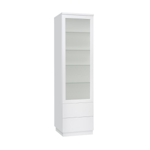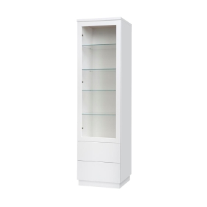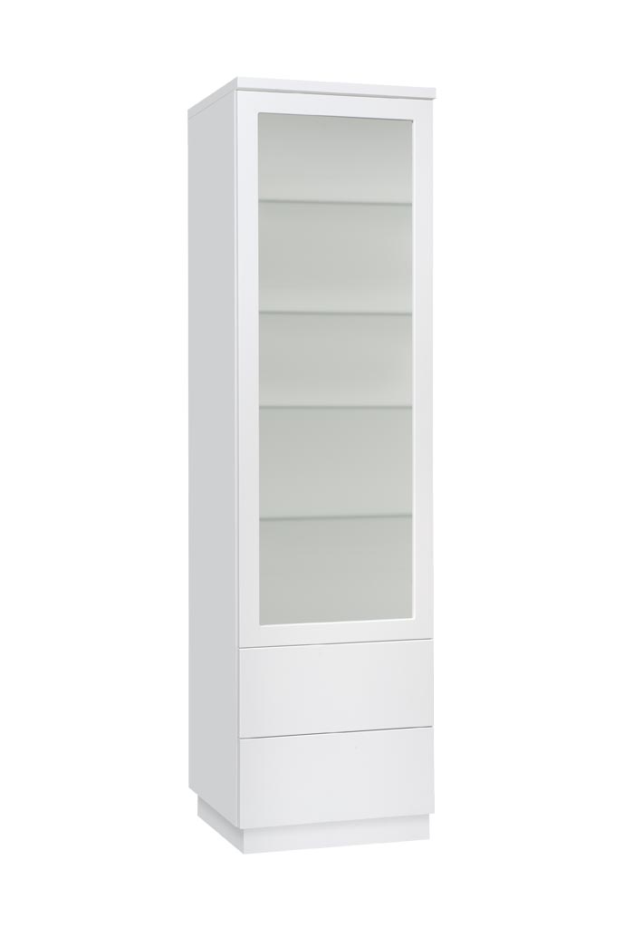 Vitriinin korkeussäädettävät valkoiset tai lasihyllyt tarjoavat joustavan tavan järjestää ja esitellä tavaroita. Lisävarusteena saatavat LED-valot tuovat esille yksityiskohdat ja luovat lämpimän tunnelman. Tämä tekee Anton vitriinistä täydellisen valinnan sekä tyylikkääseen säilytykseen että näyttävään esillepanoon.
