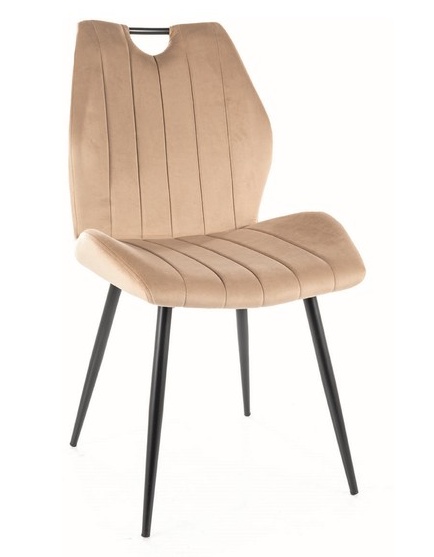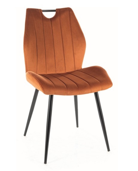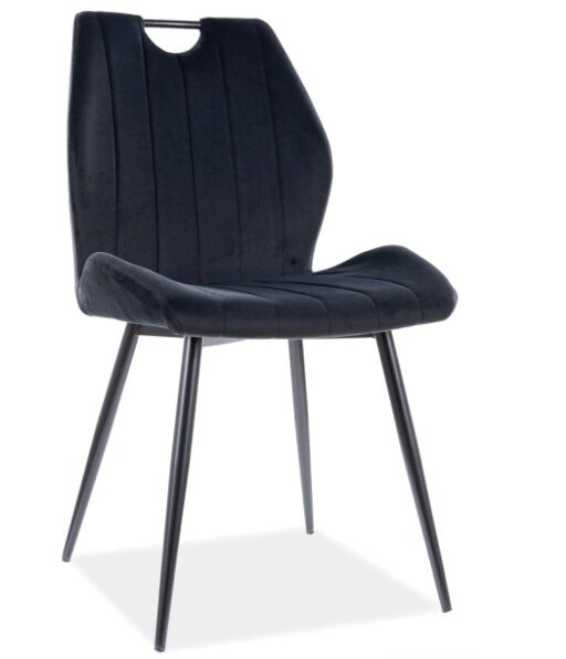 Arco-ruokapöydäntuoli yhdistää ylellisen samettikankaan ja kestävän mustan metallirungon, tarjoten ajattoman ja elegantin ilmeen, joka sopii monenlaisiin sisustuksiin. Sen pehmeä verhoilu ja moderni siluetti luovat näyttävän mutta harmonisen kokonaisuuden ruokailutilaasi.
