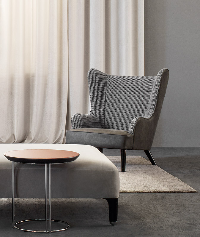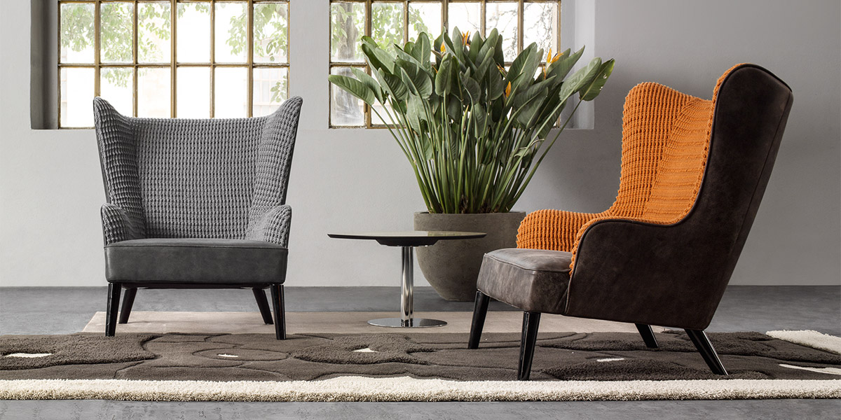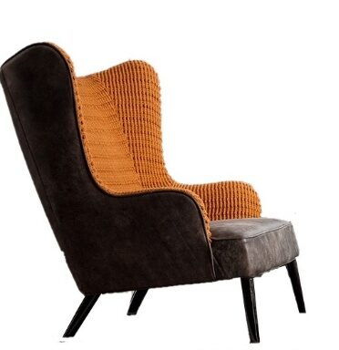 • Arlene nojatuoli on aito italialainen design-ihme, joka yhdistää nahan vahvuuden ja neulotun kankaan lämmön, tarjoten vertaansa vailla olevan mukavuuden ja rentoutumisen.