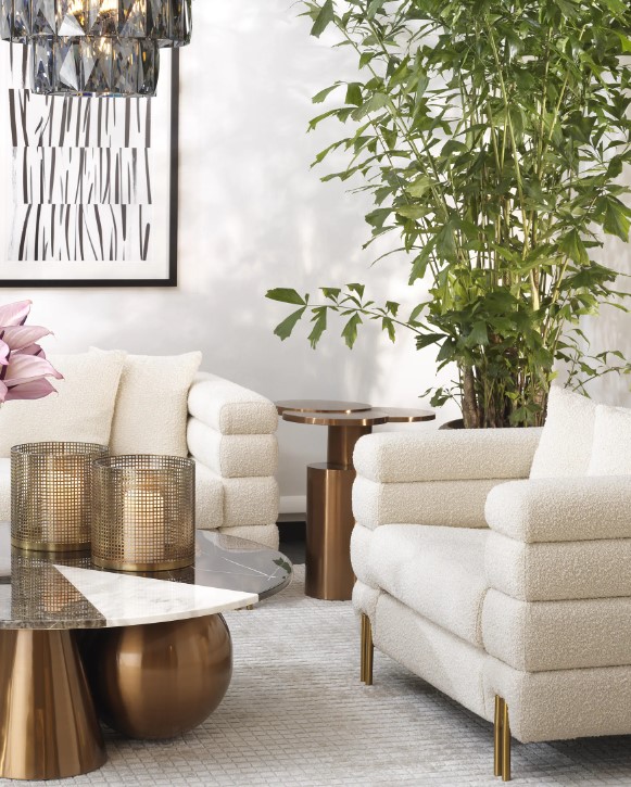 Armstrong-sivupöytä hurmaa ainutlaatuisella harjatulla kupariviimeistelyllään ja kolmitasoisella pyöreällä rakenteellaan, joka tuo olohuoneeseen modernia ylellisyyttä. Sen näyttävä muotoilu toimii yhtä hyvin sisustuksen kohokohtana kuin käytännöllisenä lisänä arkeen.