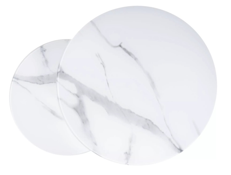 Atlanta-sohvapöytä tuo olohuoneeseen joustavuutta ja tyyliä kolmella erilaisella kansivaihtoehdolla – harmaa kiviefekti, valkoinen marmorikuvio ja musta – jotka korostavat elegantisti mattamustaa metallirunkoa. Pyöreä muotoilu antaa kokonaisuudelle modernin ja ajattoman ilmeen.