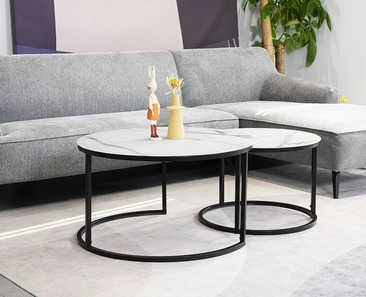 Pienempi pöytä liukuu sujuvasti isomman alle, mikä tekee kokonaisuudesta tilaa säästävän ja helposti muunneltavan. Tämä joustava ratkaisu sopii täydellisesti niin kompakteihin kuin suurempiinkin olohuoneisiin.