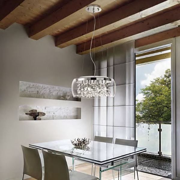 Metallirungon ja lasikehyksen yhdistelmä takaa kestävän ja viimeistellyn rakenteen, ja G9-polttimot sisältyvät toimitukseen helppoa käyttöönottoa varten. Useampi valonlähde tuottaa tasaisen ja tehokkaan valaistuksen, joka toimii sekä yleis- että tunnelmavalona.