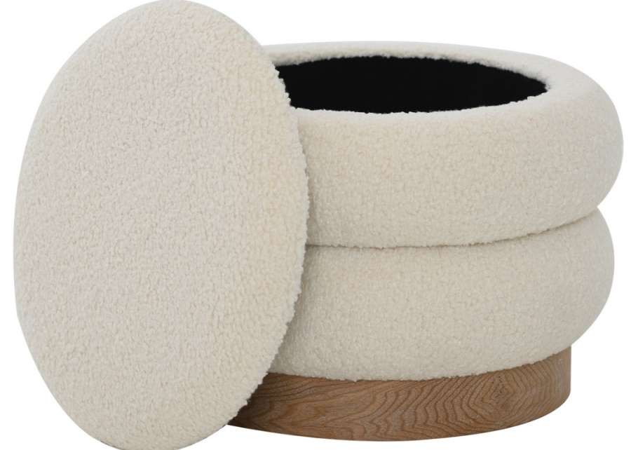 Tide rahi yhdistää modernin muotoilun ja käytännöllisen säilytystilan yhteen kauniiseen kokonaisuuteen. Pyöreä muoto ja huoliteltu verhoilu tekevät rahista sisustuksen näyttävän elementin, joka sopii yhtä hyvin olohuoneeseen, makuuhuoneeseen kuin eteiseenkin. Irrotettavan kannen alta paljastuva säilytystila on täydellinen esimerkiksi torkkupeitoille, lehdille tai pientavaroille – siisteys ja tyyli kulkevat tässä kätevässä ratkaisussa käsi kädessä.