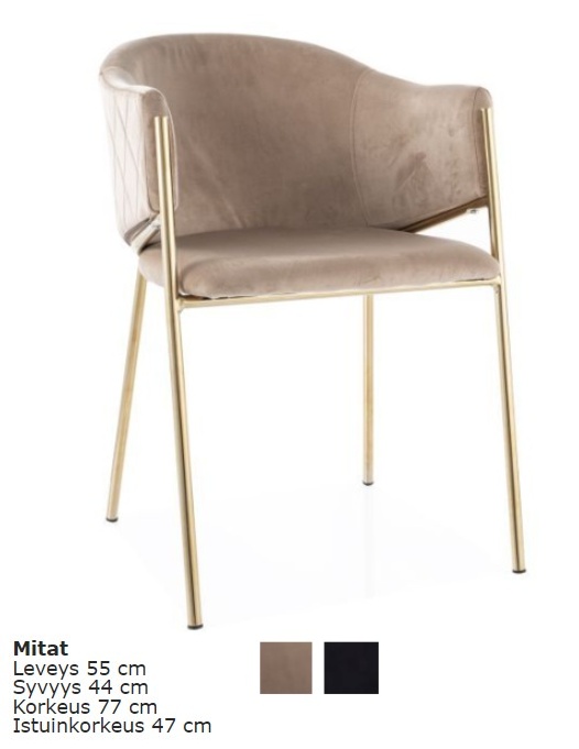 Mukana tulevat neljä Bono-tuolia, jotka ovat saatavilla harmonisessa beige–kulta-yhdistelmässä. Pehmeä verhoilu ja tukeva metallirunko tarjoavat erinomaisen istuinmukavuuden ja viimeistelevät ruokaryhmän ylellisen kokonaisuuden.