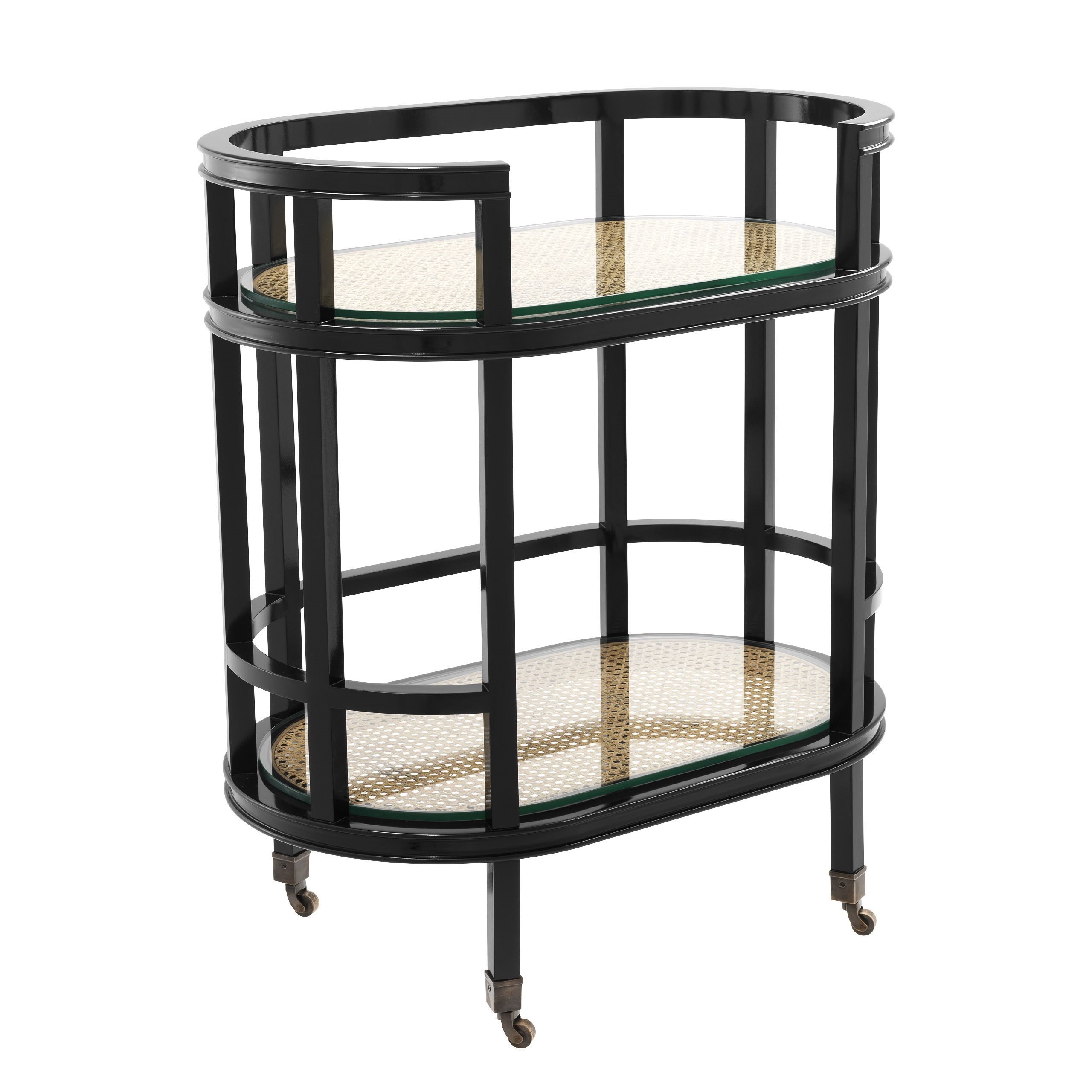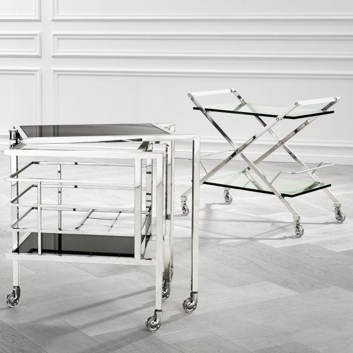Neljä antiikinpronssista pyörää takaavat sulavan liikuteltavuuden, joten vaunu siirtyy vaivatta tilasta toiseen tilanteen mukaan. Kompaktit mitat (71 × 44 × 81,5 cm) tekevät tarjoiluvaunusta täydellisen valinnan myös pienempiin tiloihin, tarjoten samalla runsaasti käytännöllistä tarjoilutilaa.