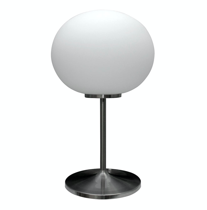 Tyylikäs ja moderni Balla pöytävalaisin erottuu ajattomalla muotoilullaan, jossa maitolasinen pallo heijastaa valon pehmeästi ja tasaisesti ympäristöön. Selkeälinjainen metallirunko ja krominen viimeistely tekevät valaisimesta elegantin sisustuselementin olohuoneeseen, makuuhuoneeseen tai edustavaan tilaan.
