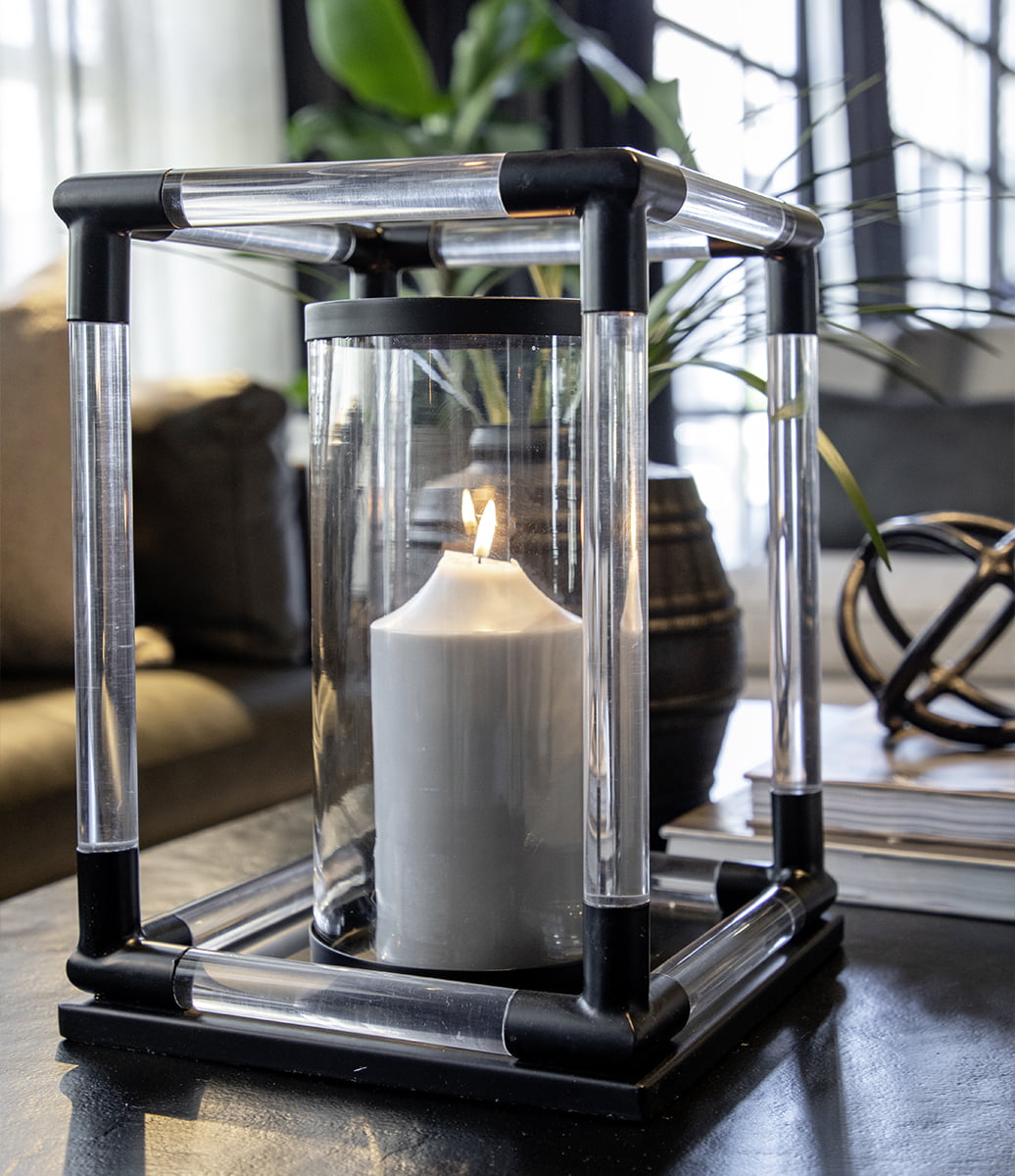 Laadukkaista materiaaleista valmistettu lyhty yhdistää tukevan teräsrungon ja kirkkaat lasiseinät, jotka kestävät käyttöä ja korostavat kynttilänvalon lämpöä. Huolellinen viimeistely varmistaa pitkäikäisen ja arvokkaan ulkonäön.