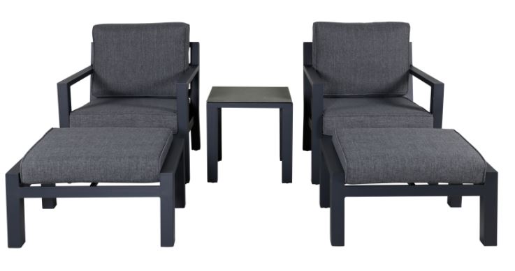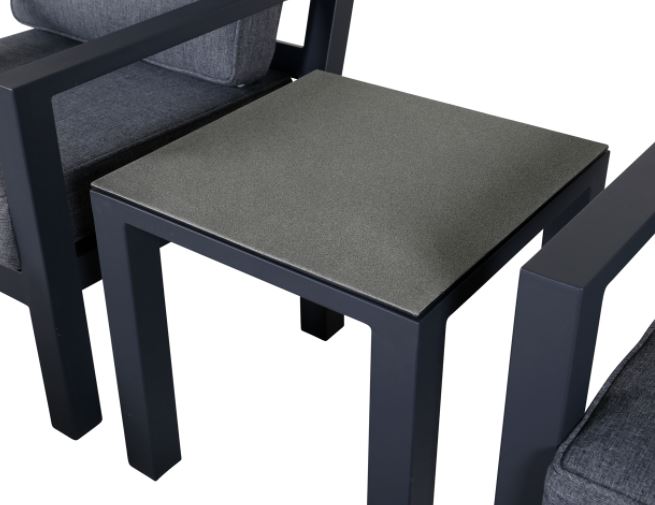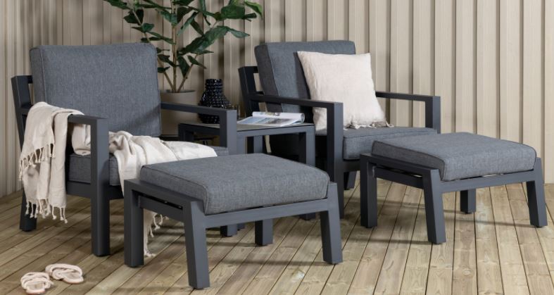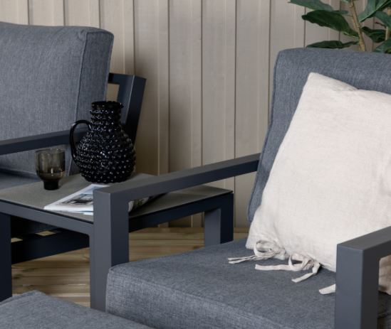 Barcelona-sohvaryhmä on mukava ja tyylikäs musta alumiinirunkoinen ryhmä, johon kuuluu kaksi nojatuolia, kaksi rahia ja niihin soveltuva sivupöytä. Tyylikkäät kestävät istuintyynyt sisältyvät settiin. Toimitus osissa.