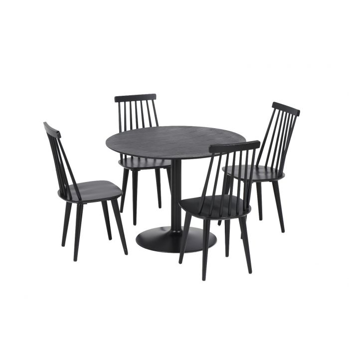 Halkaisijaltaan 100 cm pöydän ympärille mahtuu mukavasti neljä tuolia, mikä tekee siitä ihanteellisen ratkaisun keittiöihin, ruokailutiloihin ja pieniin koteihin. 75 cm pöytäkorkeus sopii yhteen useimpien ruokatuolien kanssa, ja tukeva metallijalka varmistaa vakaan ja kestävän käytön jokaisena päivänä.
