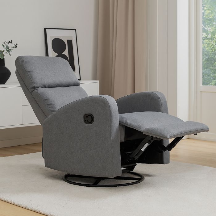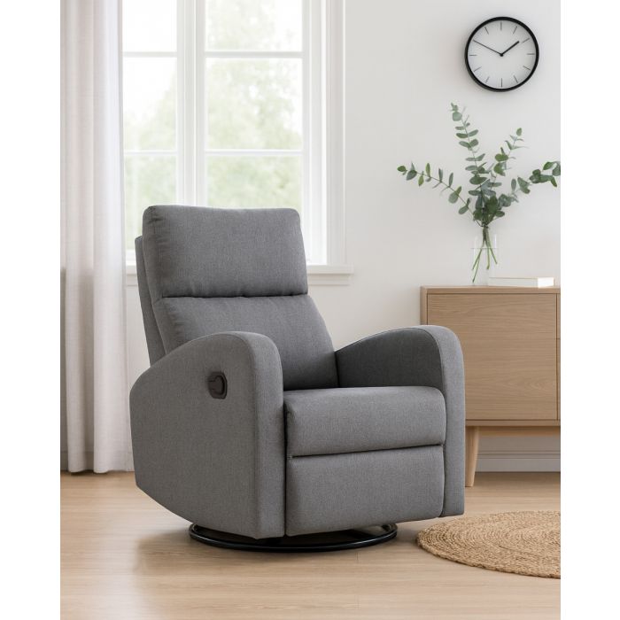 Bell-mekanismituoli tarjoaa kauniin selkeälinjaisen ulkonäön ja erinomaisen käyttömukavuuden, sillä sen mekanismin avulla selkänoja kallistuu lepoasentoon ja jalkatuki nousee ylös vaivattomasti. Tuoli on lisäksi pyörivä ja keinuva, mikä tekee rentoutumishetkistä entistä miellyttävämpiä. Harmaa Malmo-kangas (Davis Fabrics, Martindale 25 000–30 000) on kulutusta kestävää ja tyylikkään hillittyä.