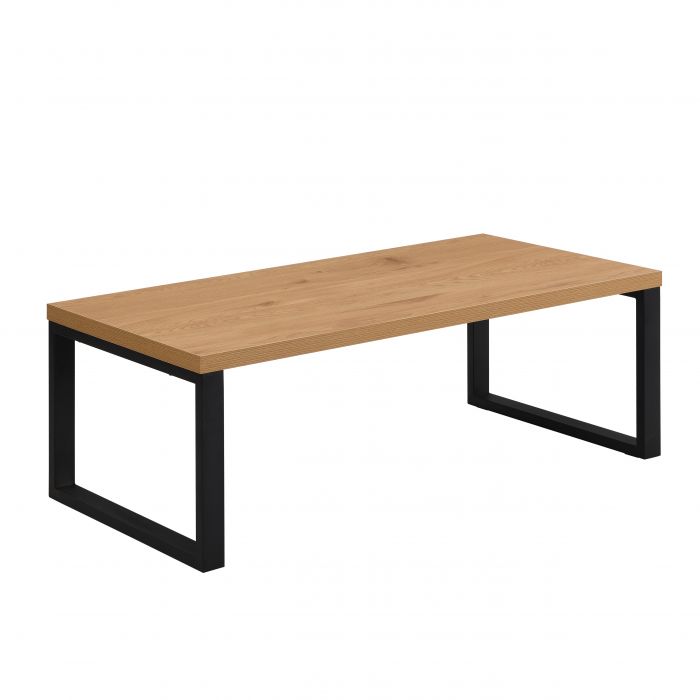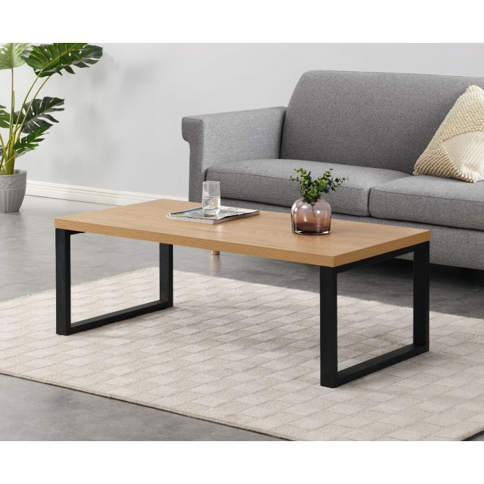 Bergen-sohvapöytä tuo olohuoneeseen modernia ja suoraviivaista designia mustaksi maalattujen metallijalkojen ja puunsävyisen paperipinnoitetun MDF-kannen ansiosta. Sen pelkistetty muotoilu tekee pöydästä helpon yhdistää niin skandinaaviseen, minimalistiseen kuin teolliseen sisustukseen.