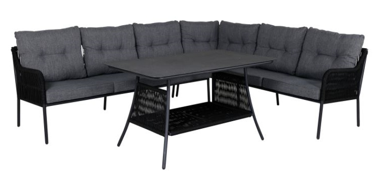 Berlin-sohvaryhmä on mukava ja tyylikäs alumiinirunkoinen ryhmä, jossa upea musta köysipunottu viimeistely. Mukana tulee sohvaan sopiva pöytä lasipinnalla. Mukana kestävät pehmeät hamaat tyynyt. Tässä ryhmässä sinä ja vieraasi voitte nauttia mukavasti myöhäiskesäilloista!