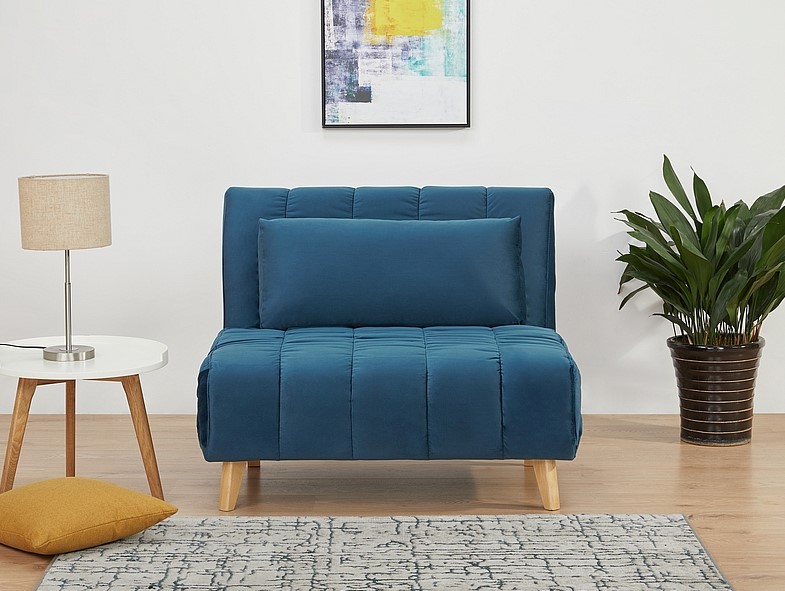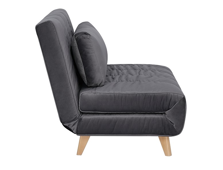 Valittavana on harmaa tai turkoosi sametti sekä harmaa kangasverhoilu, joita täydentävät massiivipuiset pyökkijalat. Kompakti mitoitus (103 × 94 × 82 cm) tekee vuodetuolista erinomaisen vaihtoehdon pieniin tiloihin, ja avattuna 103 × 191 cm vuode tarjoaa yllättävän tilavan nukkumapaikan.