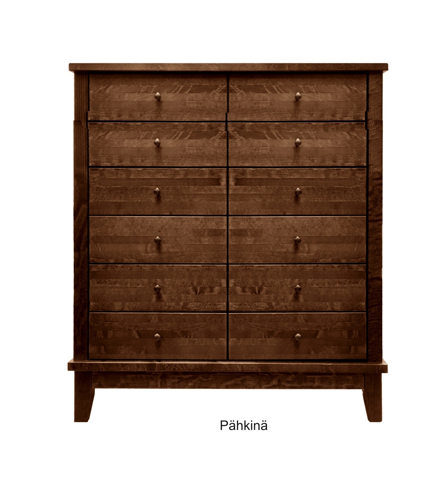 Lipasto toimitetaan sileillä laatikoilla, mutta lisähinnasta voit tilata ellipsimalliset etusarjat yksilöllistä ilmettä varten. Värityksen voi valita yksivärisenä tai kaksivärisenä – esimerkiksi eri sävyisin kansin, rungoin tai jaloin – jolloin lipasto mukautuu täydellisesti kotisi tyyliin.