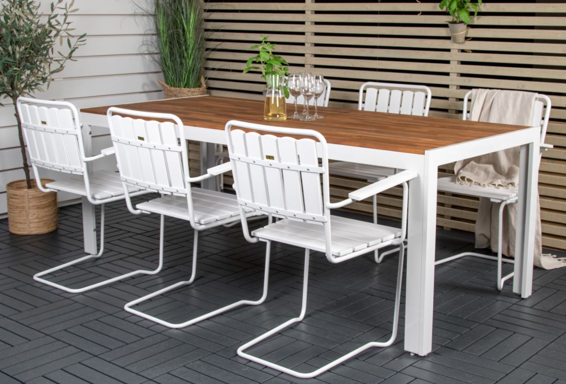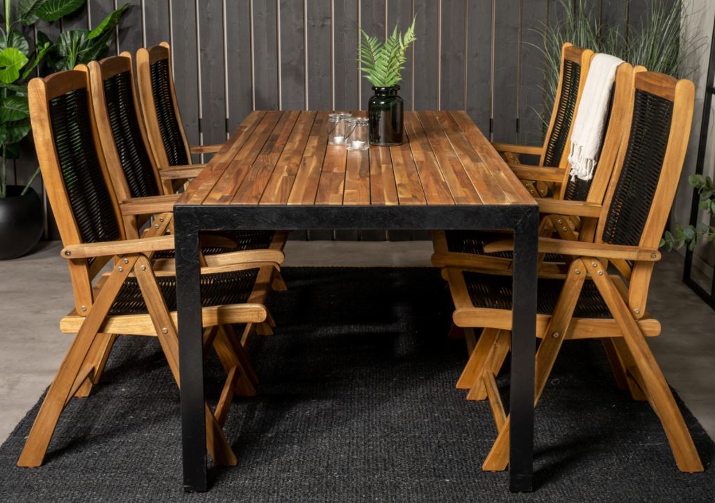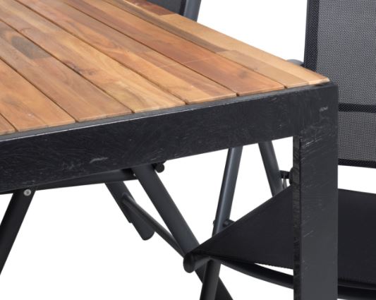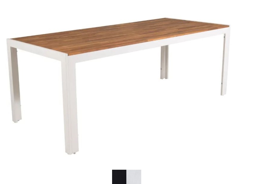Pöydän kansi on koristeellista akaasiaa ja pöydän jalat tyylikästä metallia. Kutsu perhe ja ystävät nauttimaan illallista ulkotilaasi lämpiminä kesäiltoina. Jotta ulkokalusteet säilyttäisivät viimeistelynsä, ne tulee olla öljykäsitelty.