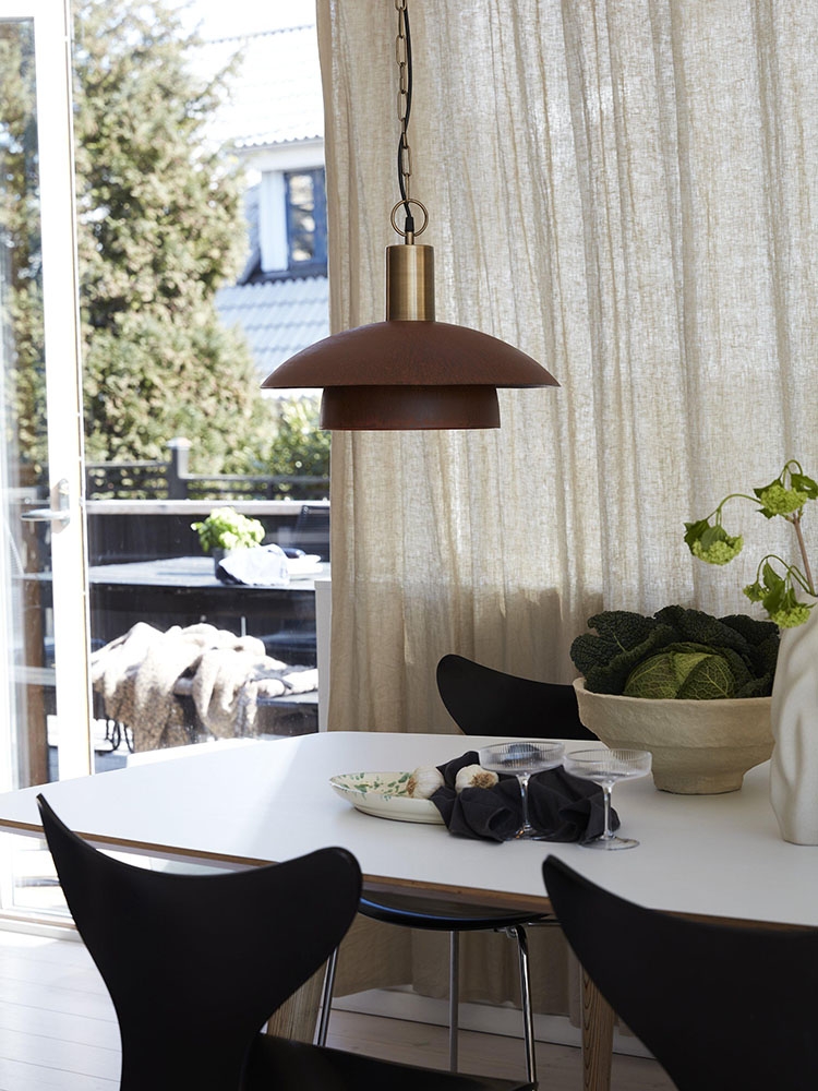 Bolton riippuvalaisin on tyylikäs ja ajaton kattovalaisin, jossa kaksi käsintehtyä varjostinta luovat näyttävän ja tasapainoisen kokonaisuuden. Ruosteen ja antiikkimessingin sävyt tuovat valaisimeen rustiikkista eleganssia, joka sopii täydellisesti niin moderniin kuin klassisempaan sisustukseen.