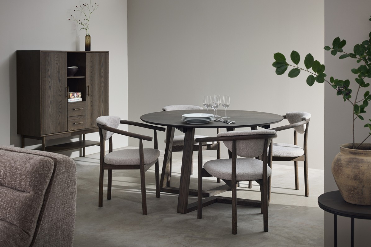 Borås-ruokapöytä tuo ruokailutilaan modernia keveyttä ja skandinaavista selkeyttä. Sen 130 cm halkaisijaltaan oleva pyöreä kansi on valmistettu laadukkaasta tammiviilusta, joka tuo sisustukseen luonnollista lämpöä ja kauniin puunsyvyyden. Kevyt, tyylikkäästi muotoiltu jalkaosa tekee pöydästä ilmavan ja antaa sille persoonallisen, ajattoman ilmeen.
