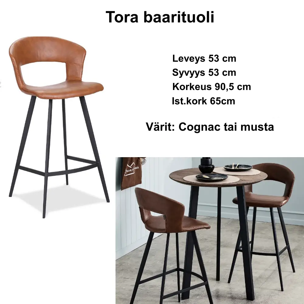 Lisähinnasta saatava hoitoöljy auttaa säilyttämään pöydän pinnan kauniina pitkään, ja massiivipuulle ominaiset kosteus- ja kuivuusvaihtelut voivat aiheuttaa halkeamia, jotka ovat normaaleja ja tarvittaessa helposti korjattavissa puukitillä. Kokonaisuuden voit viimeistellä tilaamalla pöytään yhteensopivat Tora-baarituolit lisähinnasta.