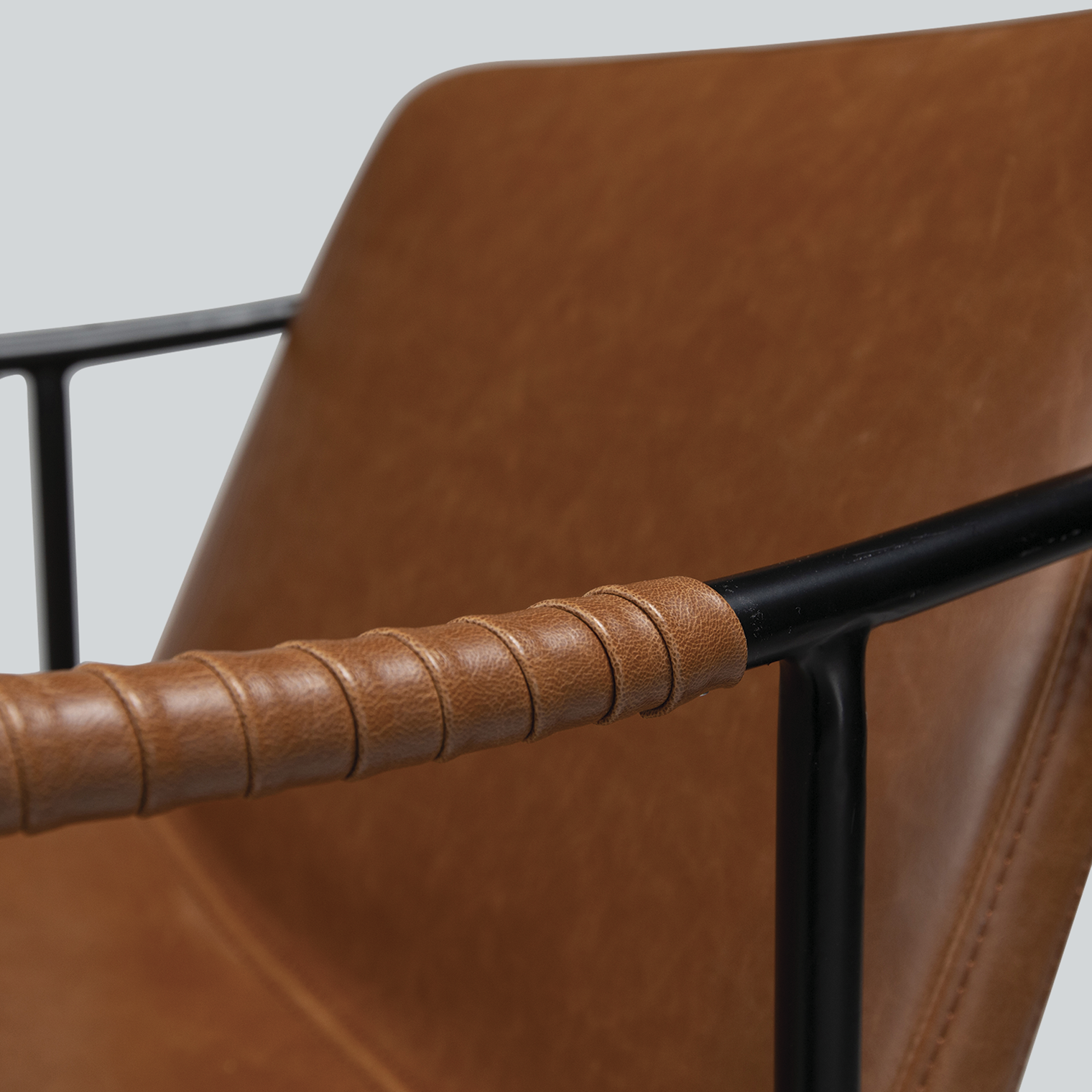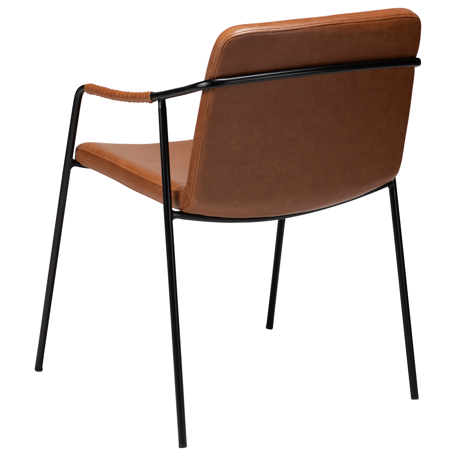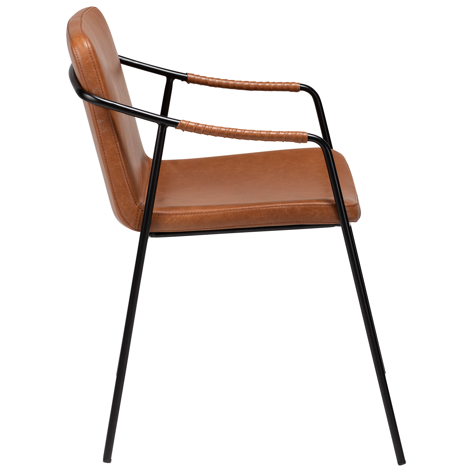 Taivutettu vaneri ja vintage-keinonahkaverhoilu takaavat tuolin kestävyyden, käyttömukavuuden ja miellyttävän istuintuntuman. Tukevat pulverimaalatut metallijalat lisäävät vakautta ja tuovat modernia kontrastia tuolin kauniiseen kokonaisuuteen.