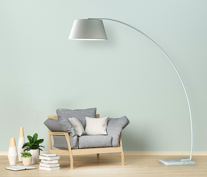 Näyttävä Bow lattiavalaisin on vaikuttava sisustuselementti, jossa kauniisti kaartuva runko ja jykevä valkoinen marmorijalusta luovat ajattoman ja ylellisen kokonaisuuden. Suurikokoinen, 50 cm halkaisijaltaan oleva varjostin on päällystetty pehmeällä sintsikankaalla, joka viimeistelee valaisimen kevyen ja elegantin ilmeen.