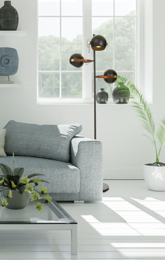 Metallijalkainen Bow lattiavalaisin on tyylikäs yhdistelmä modernia muotoilua ja harkittuja yksityiskohtia. Puolipallonmuotoinen metallikupu ja ruskeat yksityiskohdat tuovat valaisimeen lämpöä ja luonnetta, tehden siitä näyttävän mutta helposti sisustukseen sulautuvan valinnan.