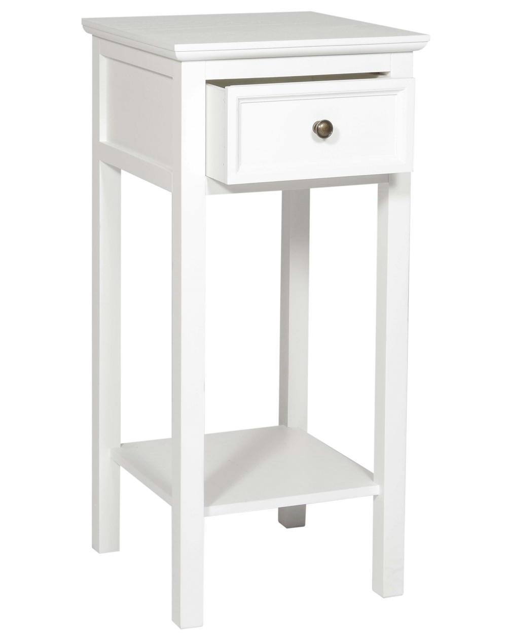 Bristol yöpöytä on täydellinen yhdistelmä käsintehtyä laatua ja ajatonta tyyliä. Jokainen pöytä on uniikki yksilö, jonka pienet kuluman jäljet ja epäsymmetrisyys luovat aidon vintage-henkisen ilmeen. Tyylikäs mattavalkoinen tai mattamusta viimeistely tekee siitä helposti yhdistettävän eri sisustustyyleihin. Käytännöllinen rakenne, jossa on yksi pieni laatikko ja alataso, tarjoaa sopivasti säilytystilaa yöksi tarvittaville esineille. Toimitetaan valmiiksi koottuna, jotta voit ottaa sen heti käyttöön ilman kokoamisen vaivaa.