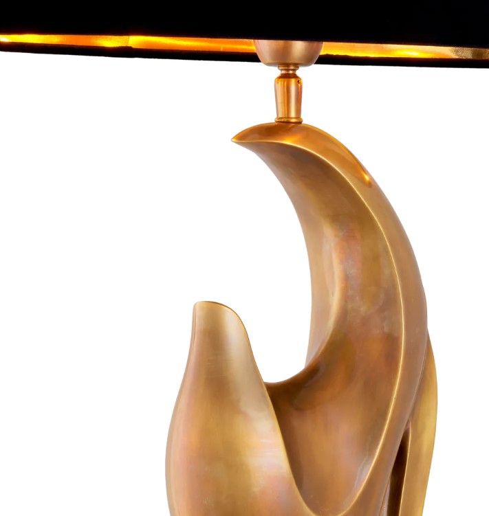 Brunetti-pöytävalaisin yhdistää taiteellisen, vintagemessingin sävyisen rungon ja mustan varjostimen, luoden elegantin ja ajattoman estetiikan. Näyttävä jalka ja huolitellut yksityiskohdat tekevät valaisimesta sisustuksen hienostuneen katseenvangitsijan, joka sopii täydellisesti moderniin ja klassiseen tyyliin.