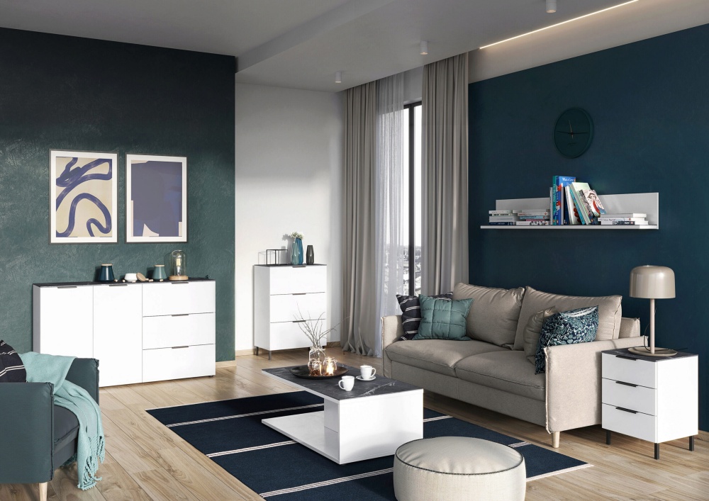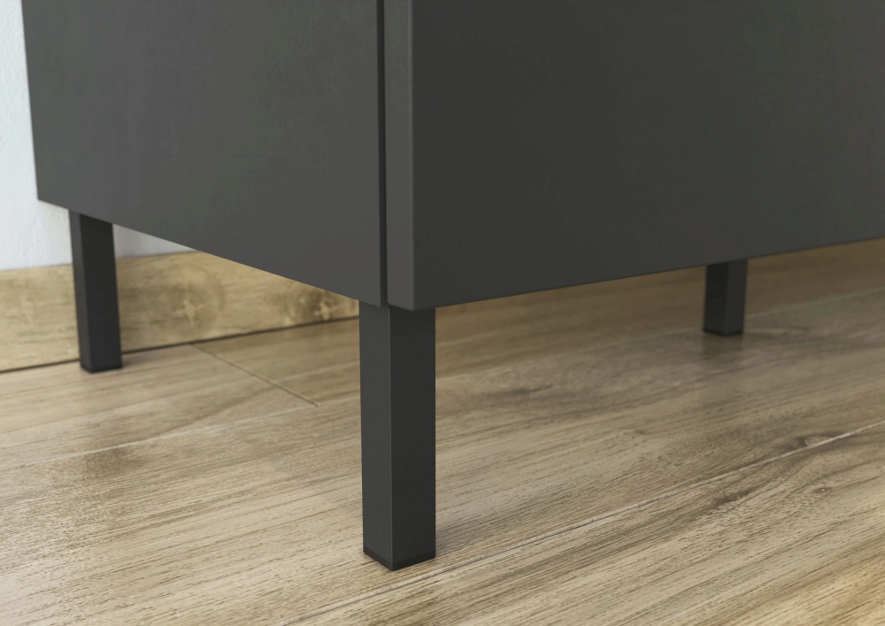 Kestävä hartsipintainen kalustelevy takaa lipaston pitkän käyttöiän ja värien säilymisen kauniina. Laatikoiden itsestään sulkeutuva mekanismi tekee käytöstä hiljaista ja sujuvaa, ja toimitukseen sisältyvät sekä matalat että korkeat jalat antavat mahdollisuuden valita tilaan sopivan korkeuden ilman lisäkustannuksia.