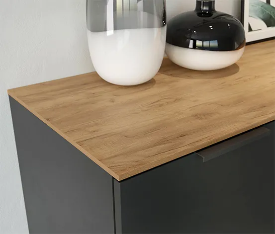 Upeat värivaihtoehdot – grafiitti/navarran tammi tai cashmere/pähkinä – tuovat sisustukseen modernia ja ajattoman tyylikästä ilmettä. Kestävä kalustelevy hartsipinnalla, ABS-reunanauhat ja metallivetimet takaavat tuotteen pitkäikäisen laadun ja viimeistellyn ulkonäön.