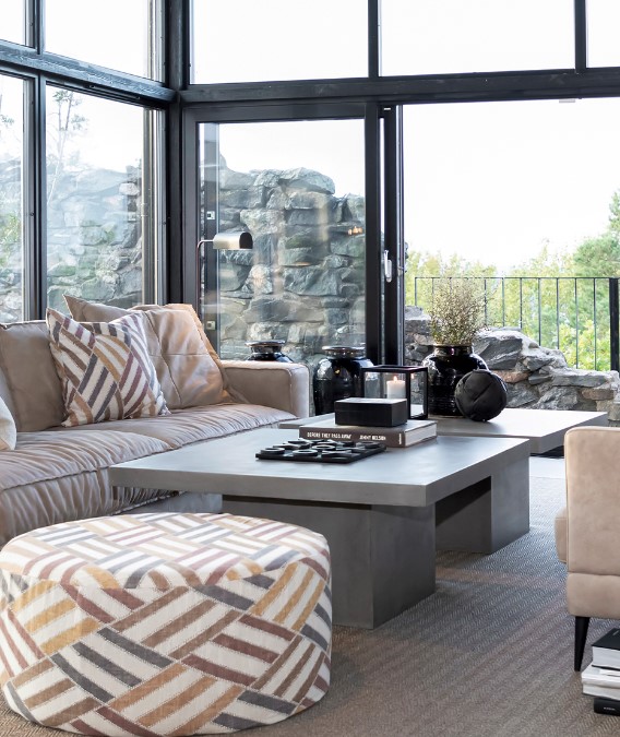 Soveltuu niin olouoneeseen kuin terassillekkin. Suojattava kuitenkin säältä. Kalusteet on valmistettu pääasiassa luonnonmateriaaleista, kuten graniittijauhoista, sementistä, luonnon juuttikuiduista sekä vedestä. Betoni on huokoista ja valmistuksen jälkeen tuote käsitellään vahalla, joka antaa aktiivisen suojan tahroja vastaan. Yhdistä muihin saman sarjan tuotteisiin luodaksesi yhtenäisen kokonaisuuden. Samaan sarjaan saatavana myös ruokapöytää.
