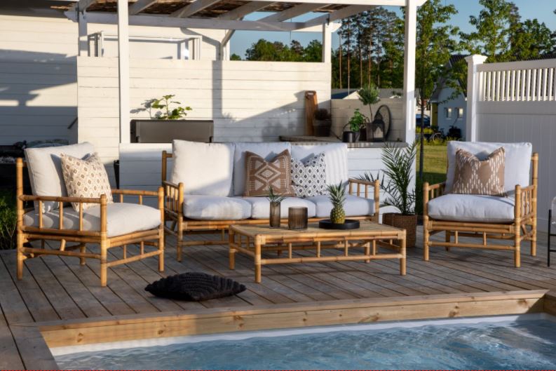 Bambu on luonnonmateriaali, joka on uskomattoman tyylikäs ja trendikäs, mutta ei kovin säänkestävä. Kalusteita ei mielellään jätetä ulos, vaan ne tulee sijoittaa kuiviin tiloihin. Vältä suuria lämpötilaeroja. Helpoin puhdistus tehdään kostealla liinalla.