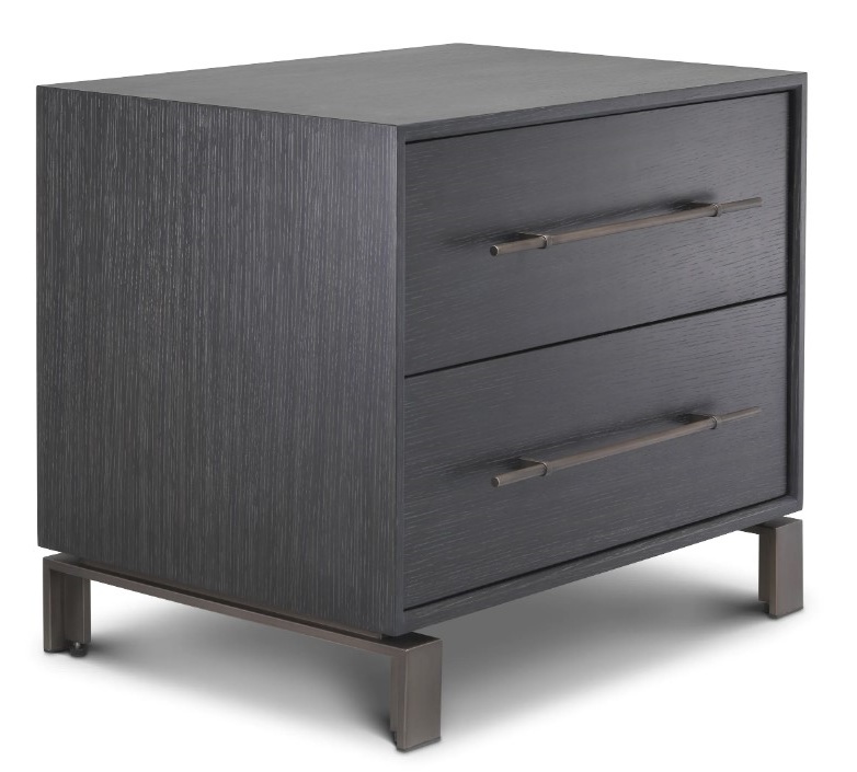 MDF-, vaneri-, tammi- ja vaahteraviilu sekä ruostumaton teräs takaavat yöpöydän erinomaisen kestävyyden ja pitkän käyttöiän. Saatavilla hiilenharmaana tai tummana pronssina, mitat 65 × 48 × 55 cm sopivat täydellisesti monenkokoisiin makuuhuoneisiin.